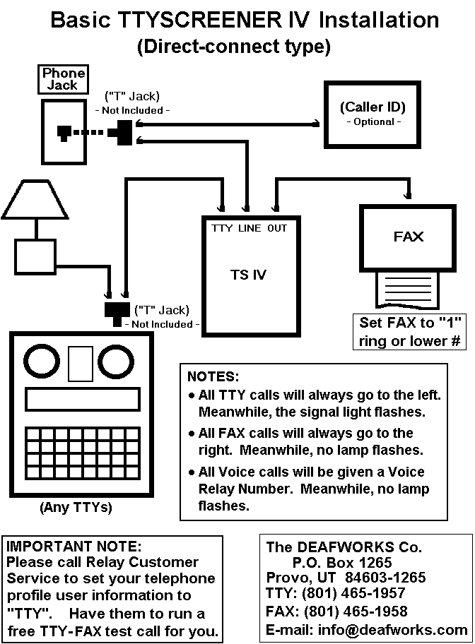 Click here to go back to Main Click here for ordering a free Catalog Click here for ordering a product via Online Click here to contact us DEAFWORKS Individual Products Click here for a self-help guide about TTYSCREENER family Click here to learn about TTYSCREENER family Click here for TTYSCREENER IV (to refresh this page)